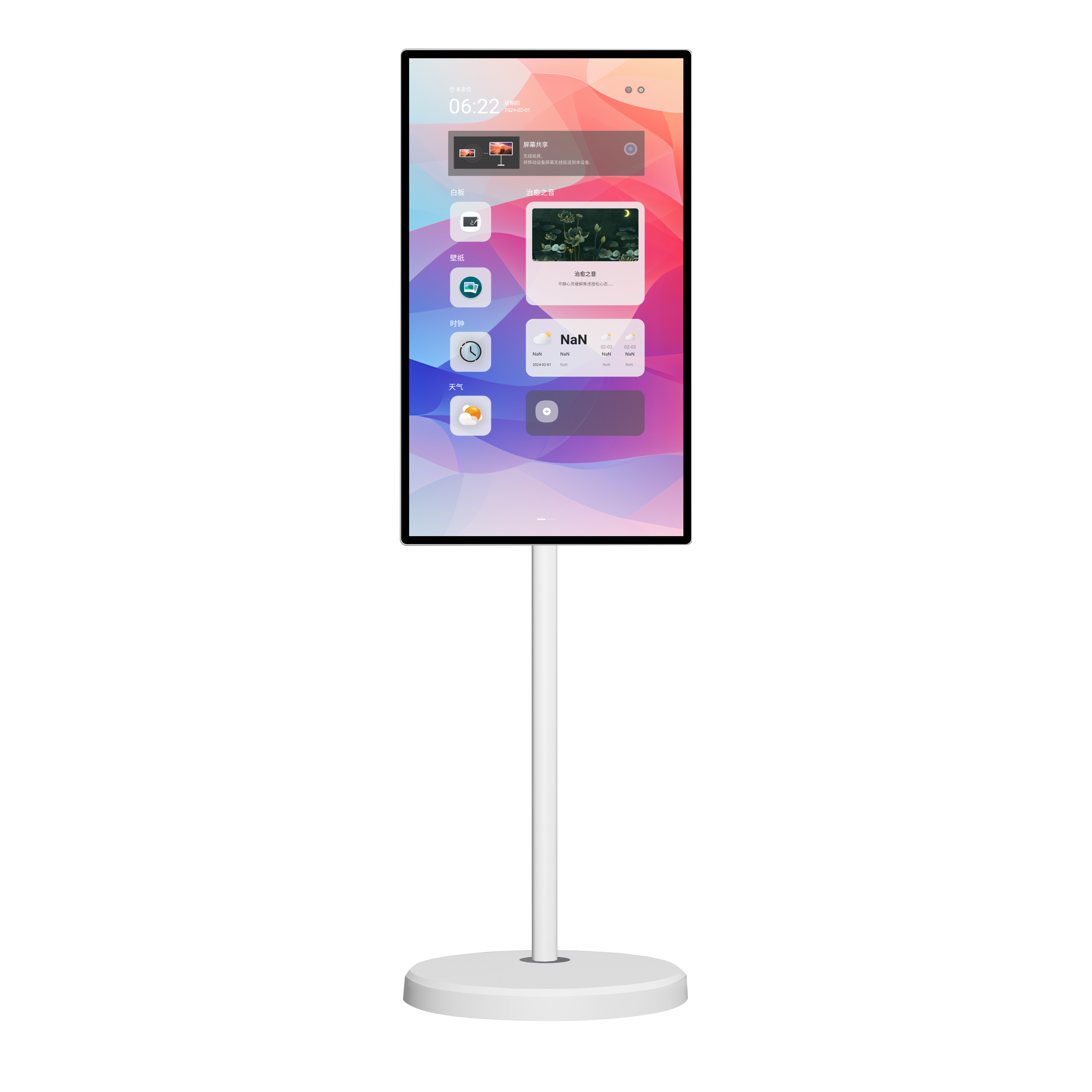 21.5/27/32 inch movable screen is a new product with built-in battery, adopts quality android with higher and quicker processor. The screen is with many features: capacitive touch surface, screw-free integrated enclosure, internal thermal convection heat dissipation, built-in high-power stereo speaker, adjustable stand enable the screen to rise、fall、rotate, and tilt forward at will.